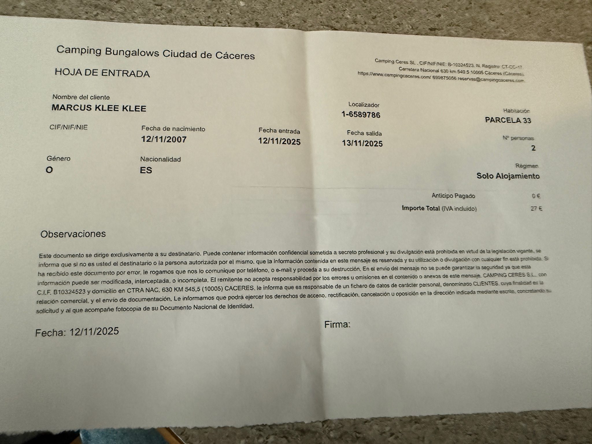 Übrigens, Marcus ist schon Spanier – die Anmeldung des Campingplatzes ist der Beweis 😂
