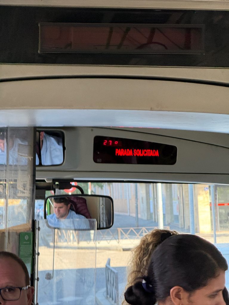 Mit dem Bus fuhren wir in die Altstadt. Das Thermometer im Bus zeigt 27 Grad an…