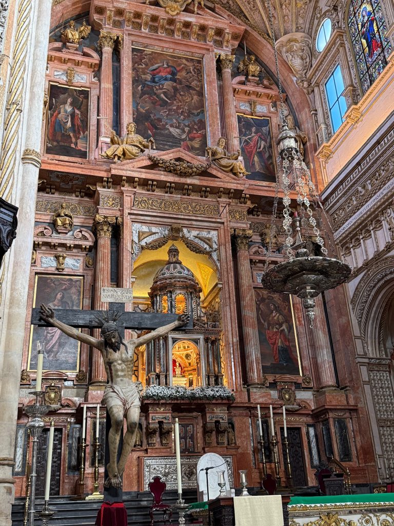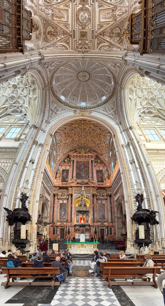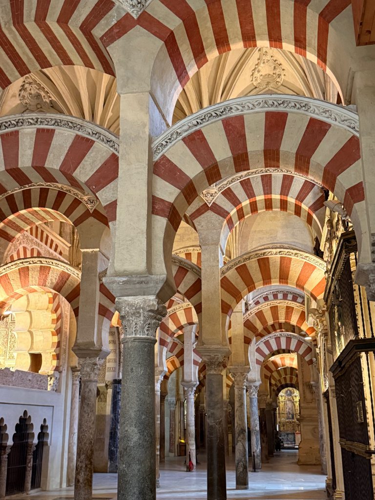 Unser erstes Ziel: die Mezquita-Catedral, ein unglaubliches Gebäude. Die Mauren haben hier eine der größten Moscheen weltweit gebaut und im 13. Jahrhundert wurde in das Gebäude eine katholische Kathedrale hinein gesetzt. Über 800 Säulen gibt es in dem riesigen Kirchenraum. Wirklich eine der interessantesten Kirchen, die wir bislang besucht haben.