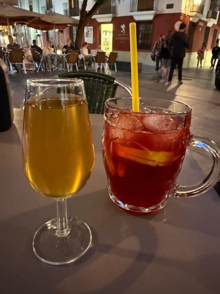 So langsam wird es dunkel und wir mischen uns im jüdischen Viertel unters Volk – auf einem kleinen Platz nehmen wir noch einen Drink, der Bus fährt erst um 19.30 Uhr zurück und wir wollen noch kochen – vielleicht schaffen wir es doch noch, uns den spanischen Zeiten anzupassen.