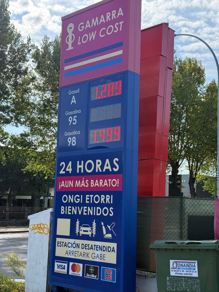 Unterwegs tankten wir das erste mal in Spanien – erfreuliche Preise 😉. Ein Besuch im Supermarkt war auch mal wieder fällig. Es gab riesige Paprikaschoten ( hier zum Vergleich mit einem Päckchen Kaffee) und jede Menge Schinkenkeulen.