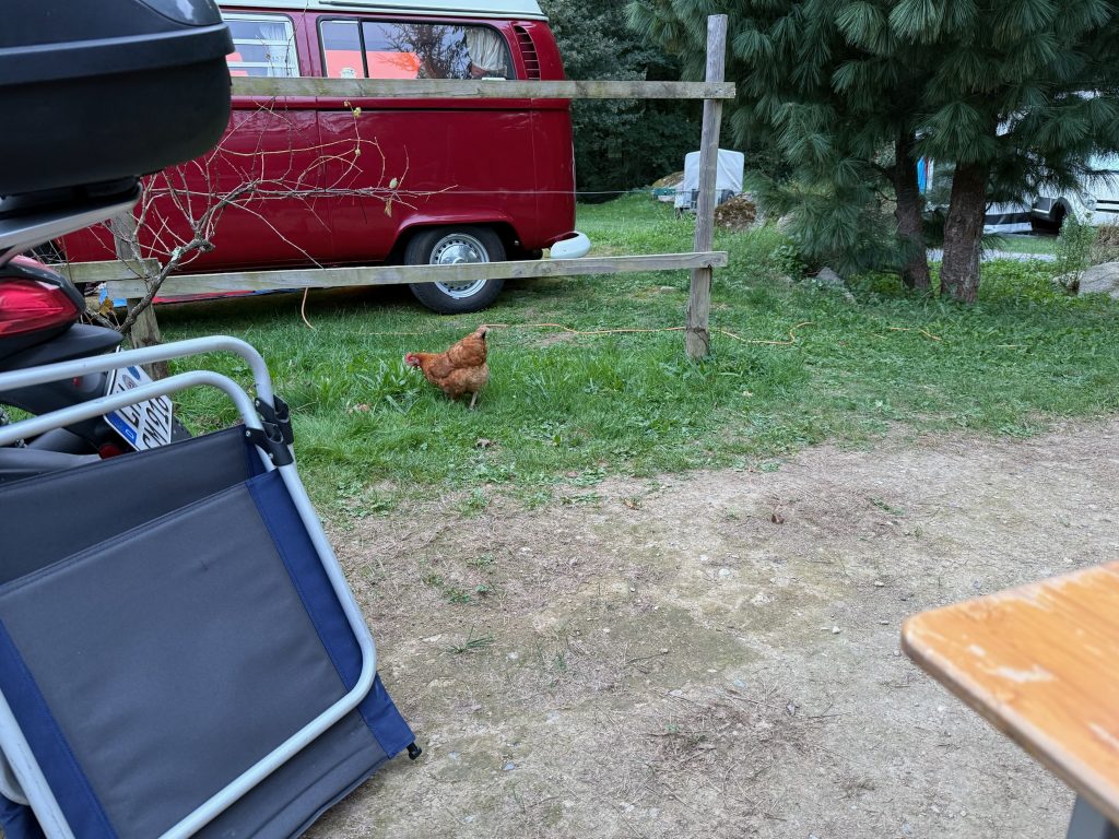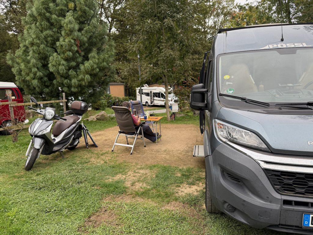 Auf dem Campingplatz „La Forêt“ waren wir vor zwei Jahren schon mal. Es ist sehr nett hier und relativ günstig, ca. 1,7 Kilometer vom heiligen Bezirk entfernt. Erstaunlicherweise ist es ziemlich voll, der Campingplatz, der näher an der Stadt liegt, ist ausgebucht. Vielleicht liegt es daran, dass sich alle noch schnell den Ablass holen wollen – das heilige Jahr gilt auch hier 🤩