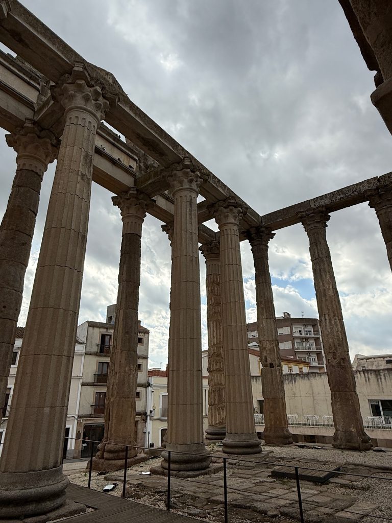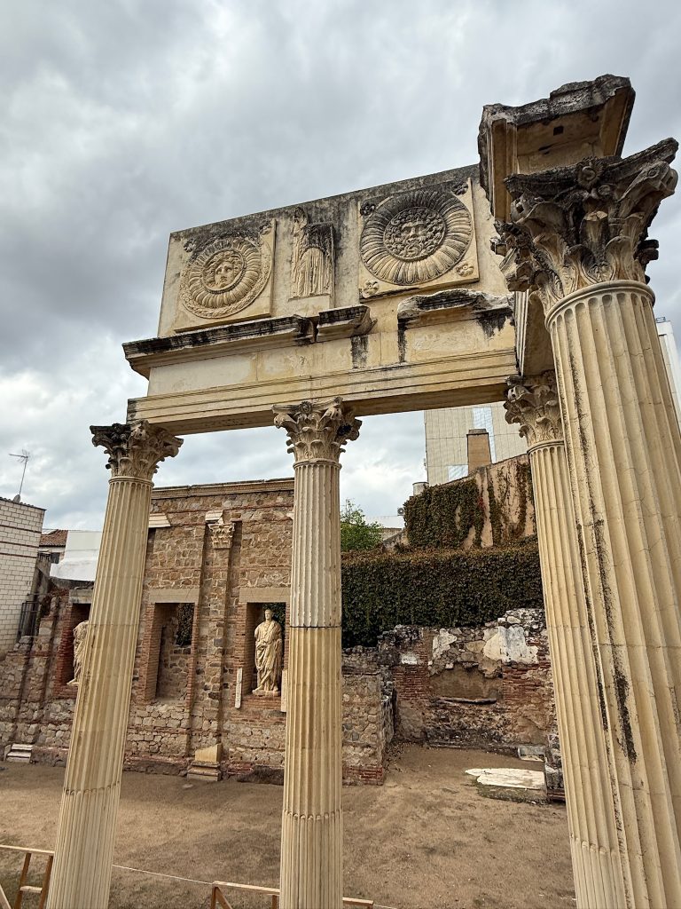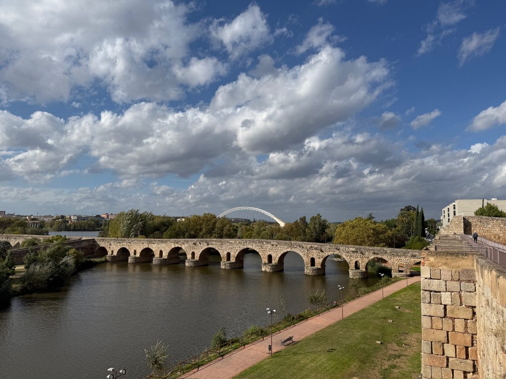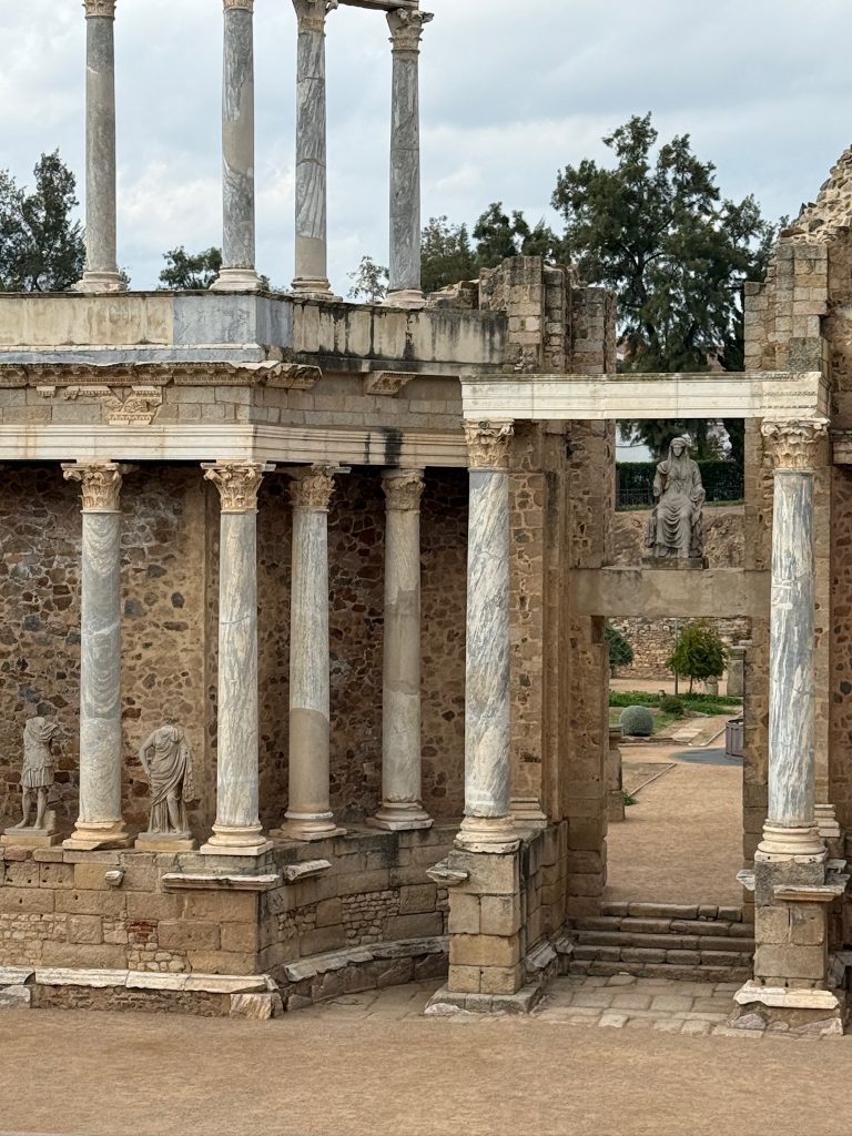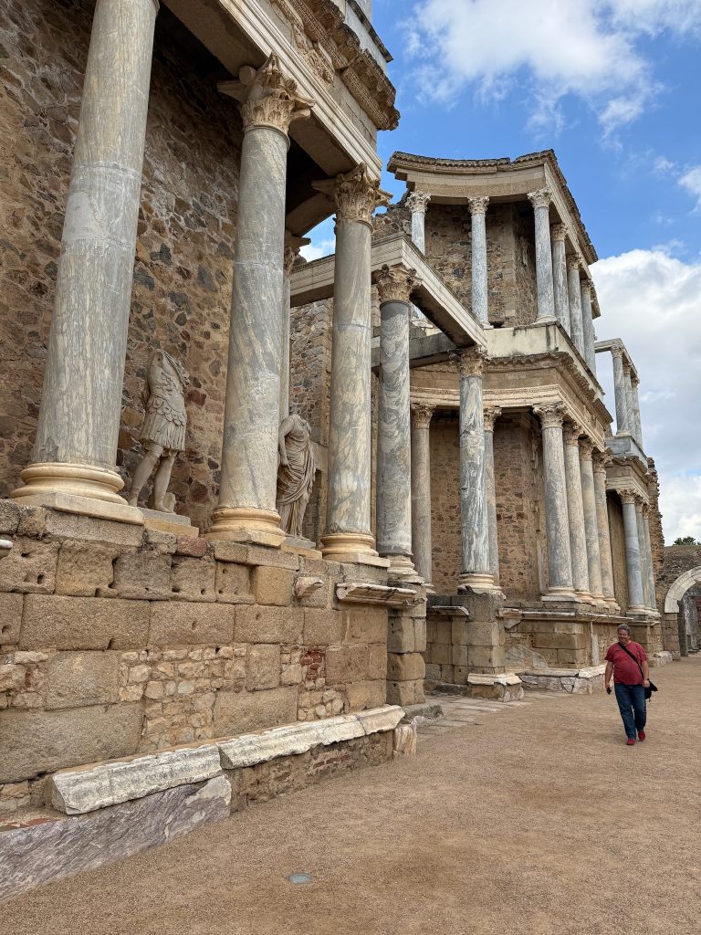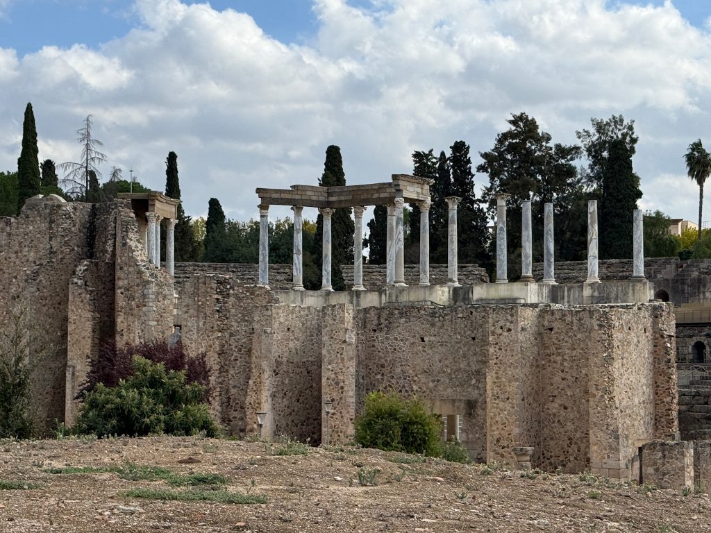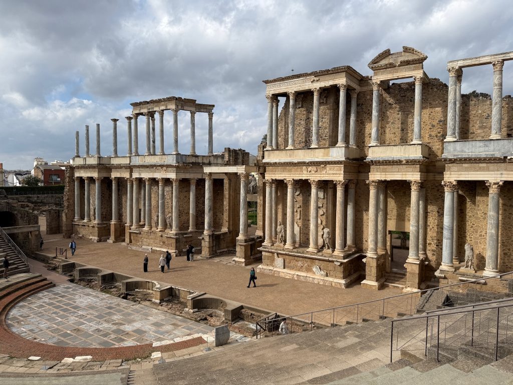 Heute wandeln wir auf römischen Spuren. Im Römischen Reich war die Stadt unter dem Namen Emerita Augusta Hauptstadt der Provinz Lusitania bekannt. Sie wurde im Jahre 25 v. Chr. von Kaiser Augustus als Kolonie für Veteranen Römischer Legionen gegründet. Im Laufe der Zeit wurden zahlreiche repräsentative Gebäude errichtet: Theater, Amphitheater, Circus, Tempel, Brücken und Aquädukte. Über Jahrhunderte, bis zum Untergang des Römischen Reichs, war Mérida ein wichtiges wirtschaftliches, militärisches und kulturelles Zentrum.