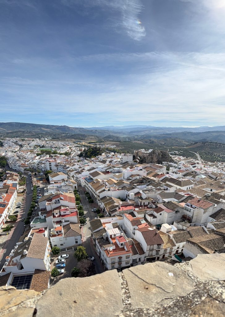 Es geht nach Olvera, natürlich eins der schönsten weißen Dörfer. Wir besichtigen die Kirche und die Burgruine, die ganz oben auf dem Hügel thronen. Die Aussicht ist gigantisch, man kann sie gar nicht auf dem Foto festhalten (die schönsten Bilder sind im Kopf). Haben wir eigentlich schon mal erwähnt, dass Andalusien ein Traum ist?