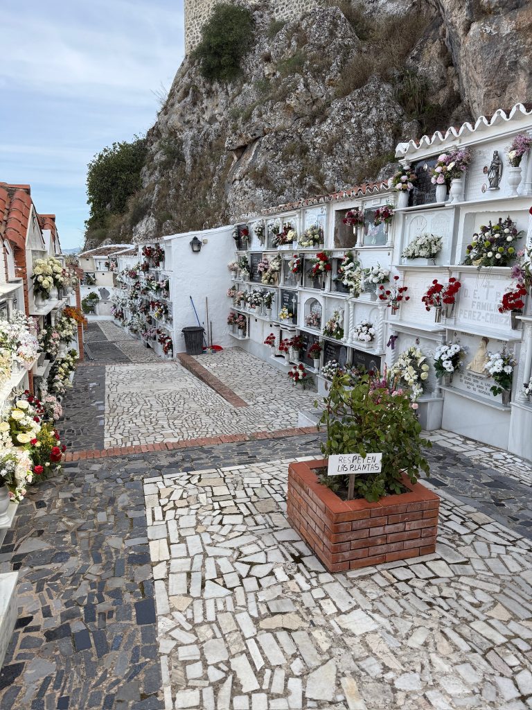 Dem Friedhof statten wir auch noch einen Besuch ab. Interessant, das Geburtsdatum wird nicht auf dem Grabstein festgehalten – nur das Sterbedatum und das Alter. Der Blumenschmuck besteht überwiegend aus Stoff, sehr praktisch, muss man nicht ständig gießen.