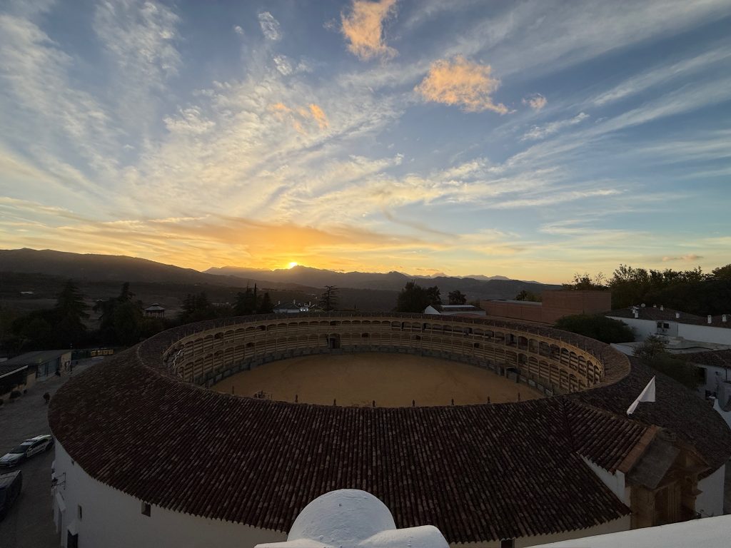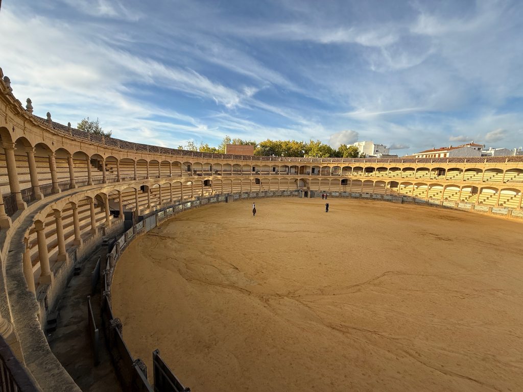 Komisch, es ist hier viel leerer als im letzten Sommer 🤣. Wir besichtigen die Stierkampfarena. Sie gilt als eine der ältesten und eine der schönsten ihrer Art. Die kreisrunde und in vieler Hinsicht wohldurchdachte Anlage gilt als Vorbild für die meisten Stierkampfarenen der Welt. Hemingway war natürlich auch schon hier.