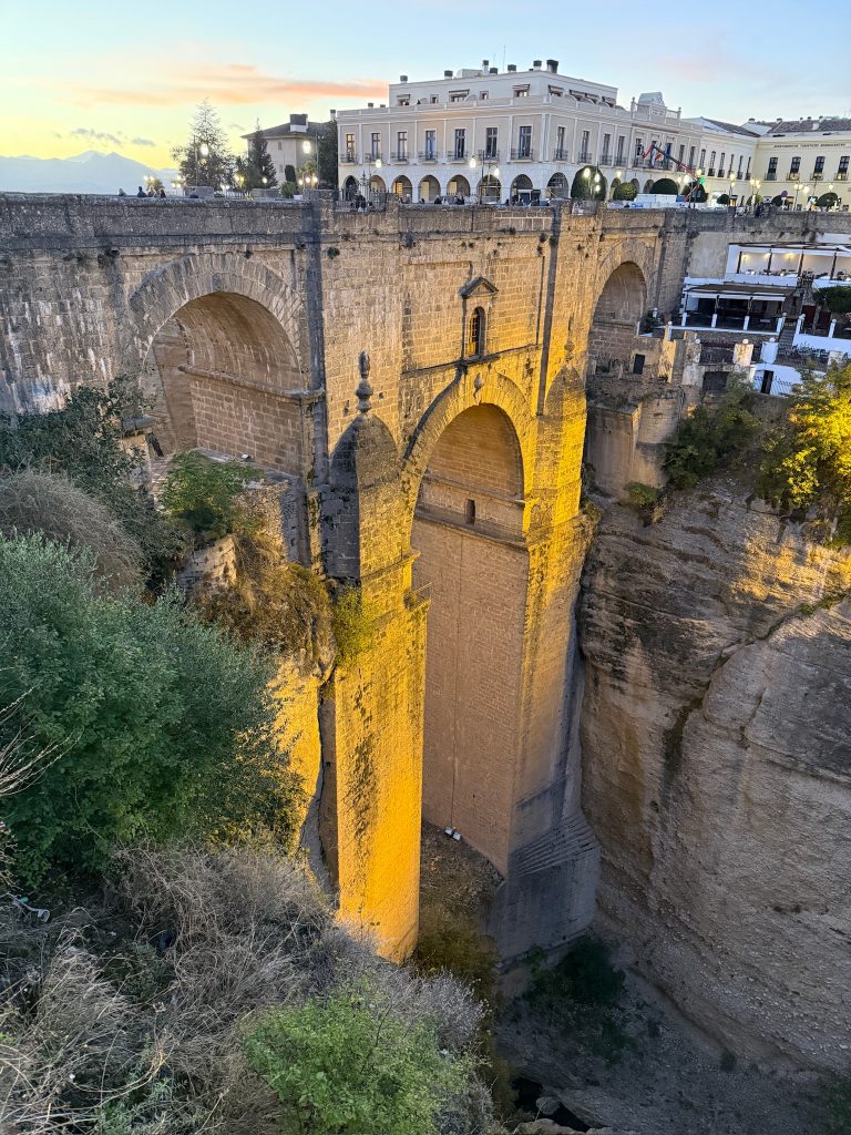 Die berühmte Brücke konnten wir heute im Dunklen bewundern (das ist der Vorteil, wenn man im November hier ist, es wird früh dunkel). Mit einer Höhe von 98 m war der Puente Nuevo bei seiner Eröffnung die höchste Brücke der Welt.