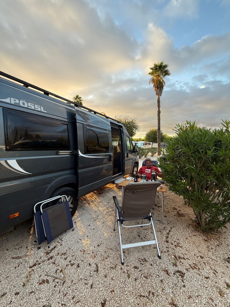 Hinter Sevilla haben wir einen schönen Stellplatz gefunden. Ach ja, die Uhr haben wir wieder eine Stunde vorgestellt. Dann setzten wir uns gemütlich hin, genießen 23 Grad (der spanischen Rezeptionistin ist eher kalt, sie trägt Pullover und erklärt uns, dass der Pool natürlich bei diesen Temperaturen nicht mehr geöffnet sei 😂) und lassen mal wieder eine Maschine Wäsche laufen – hier funktioniert auch der Trockner.